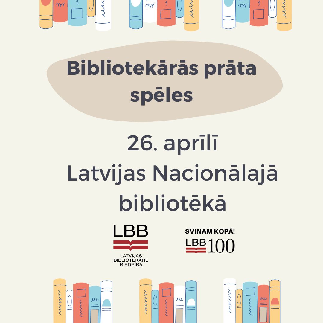 2023. gada 26. aprīlī Latvijas Bibliotēku festivāla “Svinam kopā! LBB 100” ietvaros notiks erudīcijas spēle “BIBLIOTEKĀRĀS PRĀTA SPĒLES”.