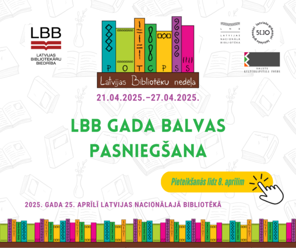 Pavasaris ierasti ir laiks, kad Latvijas Bibliotekāru biedrībā (LBB) atskatāmies uz iepriekšējā gadā paveikto. Tāpēc aicinām ikvienu LBB institucionālo un individuālo biedru izteikt atzinību saviem kolēģiem un paši sev par paveiktajiem darbiem, kas 2024. gadā spējuši iedvesmot ne tikai bibliotēkas lietotājus, lasītājus un vietējo kopienu, bet arī plašo bibliotekāru saimi.