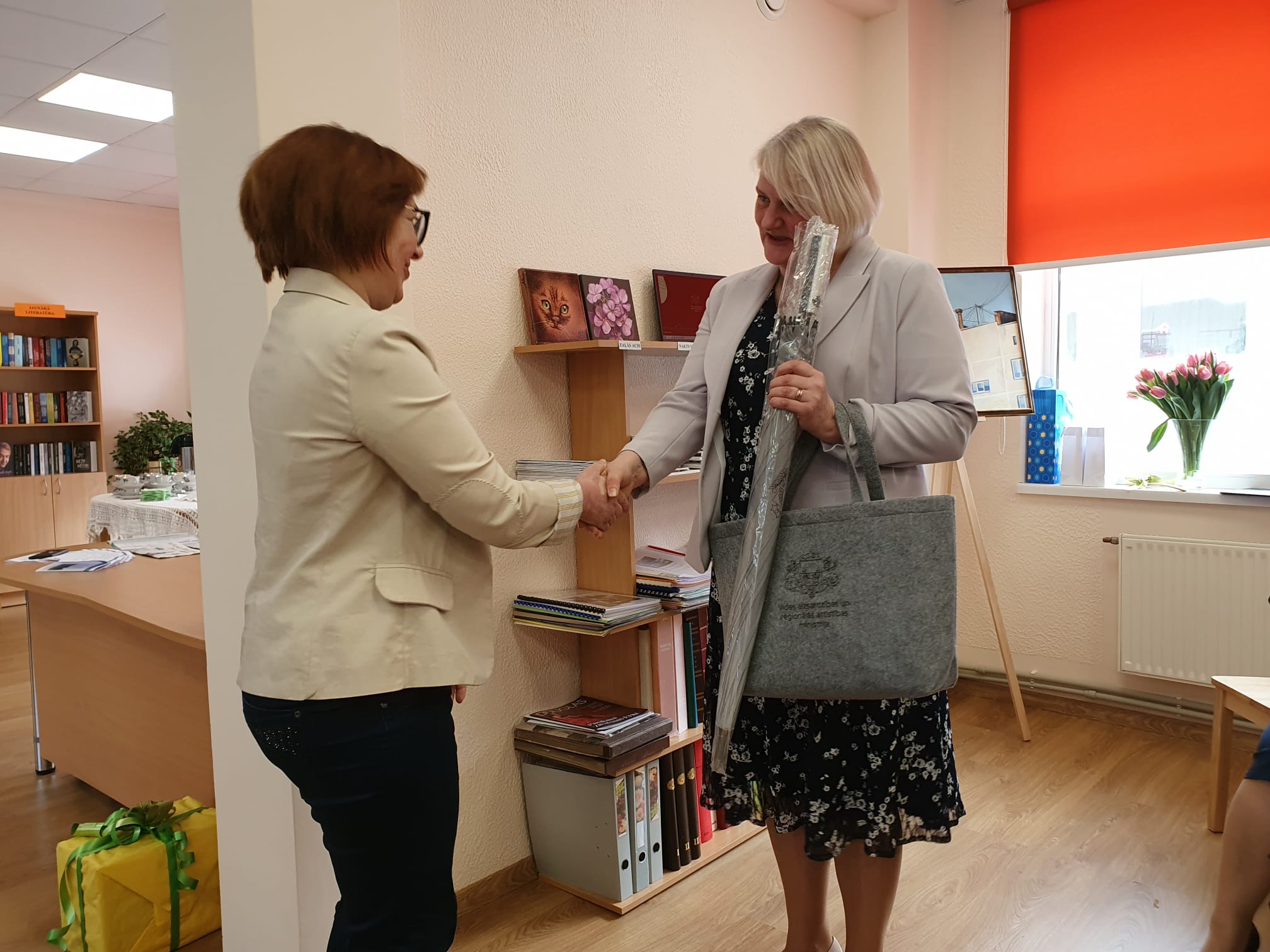 (No labās) Jaunlaicenes bibliotēkas vadītāja Iveta Udrase un VARAM pārstāve Maija Anspoka. Foto: Evita Aploka