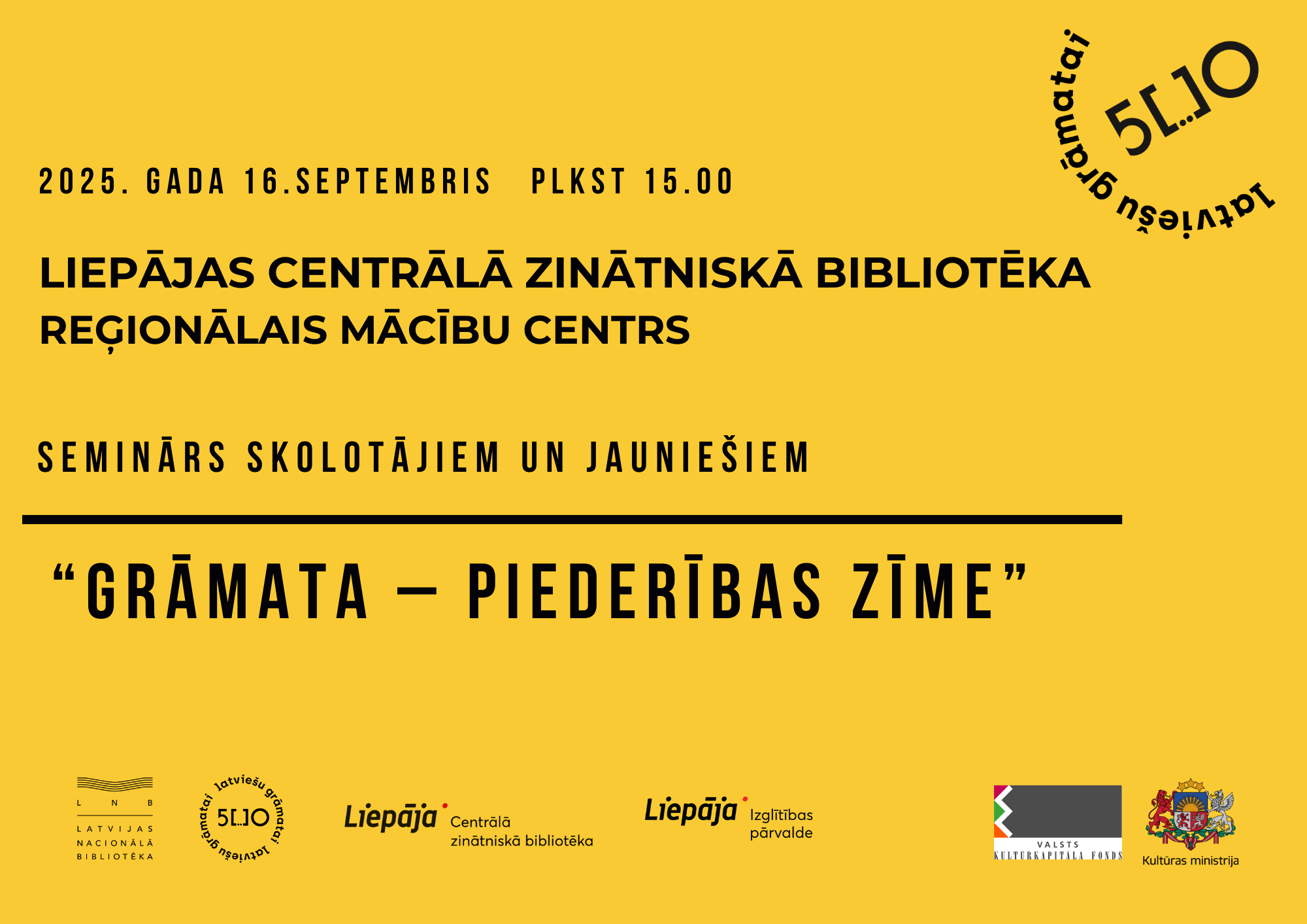 2025. gada 16. septembrī Liepājas Centrālajā zinātniskajā bibliotēkā (LCZB) notika seminārs skolēniem un skolotājiem “Grāmata – piederības zīme”.