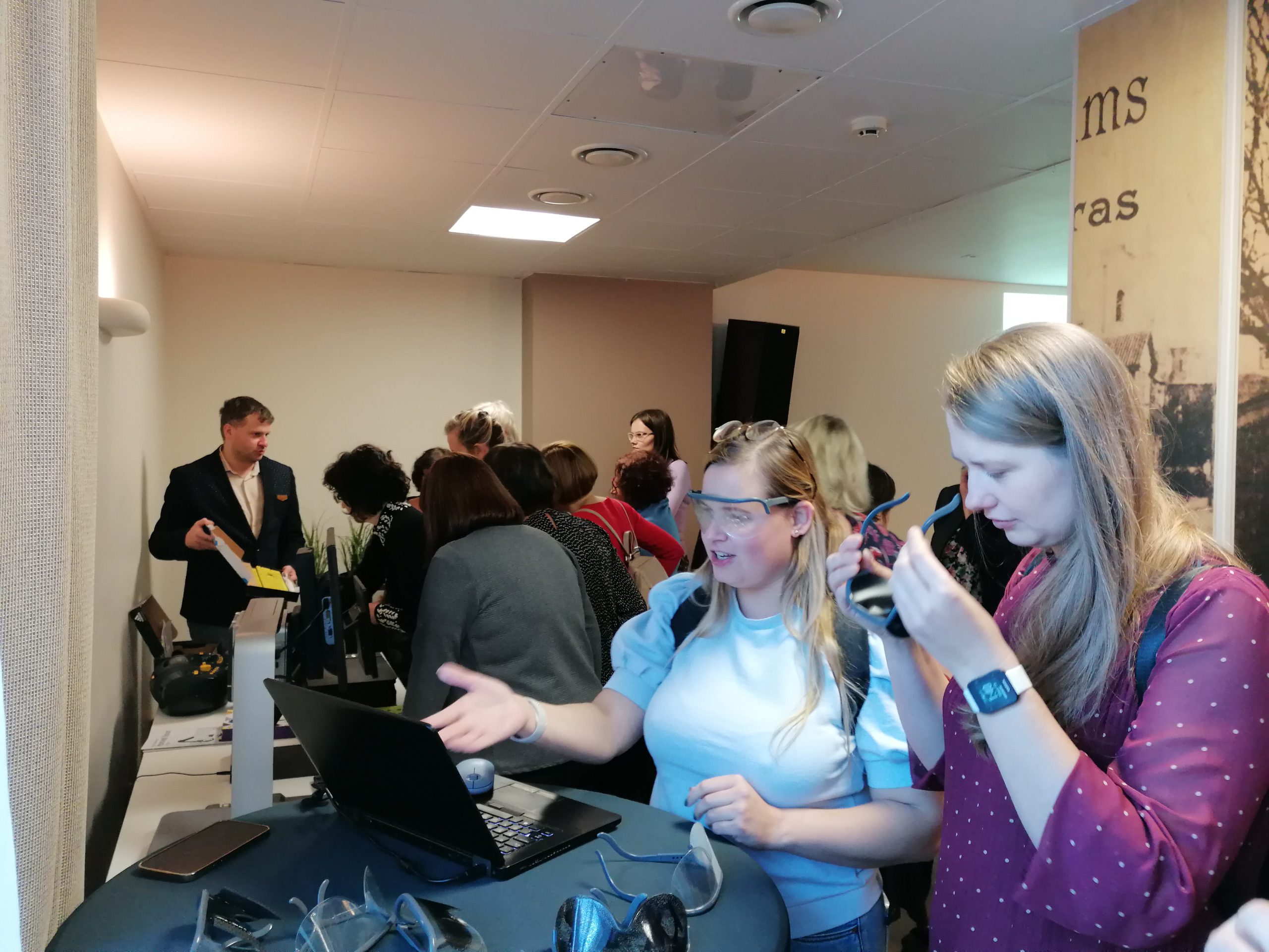 SIA Exceed pārstāvis Gatis Grīntāls prezentēja palīglīdzekļus un produktus, kuri piemēroti cilvēkiem ar redzes traucējumiem, un novadīja praktisko darbnīcu, kuras laikā bibliotekāres tika iepazīstinātas ar dažādām video lupām, ar kuru palīdzību tekstu var palielināt līdz pat 70 reizēm, ar Zoom Text programmatūru, kuru instalējot datorā, ikviens var ērti palielināt tekstu sev nepieciešamajā izmērā, un teksta lasītāju Bruno, kas nodrošina iespēju drukātu materiālu pārvērst audio formātā un tos klausīties. Lai iejustos tajā kā apkārtējo pasauli redz cilvēki ar dažādiem redzes traucējumiem, bibliotekāres varēja arī pielaikot īpašas brilles.
