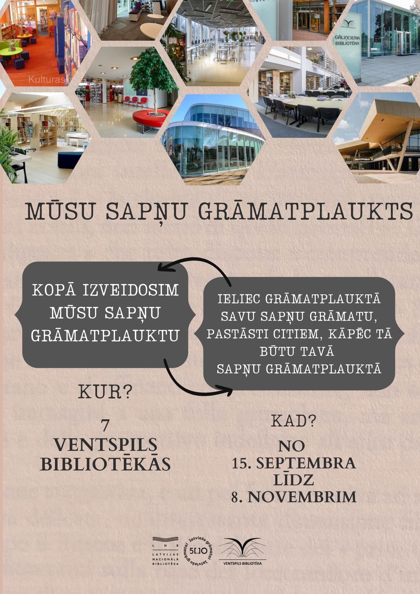 Gaidīsim lasītājus Ventspils bibliotēkās, lai kopīgiem spēkiem piepildītu “Mūsu sapņu grāmatplauktus”!