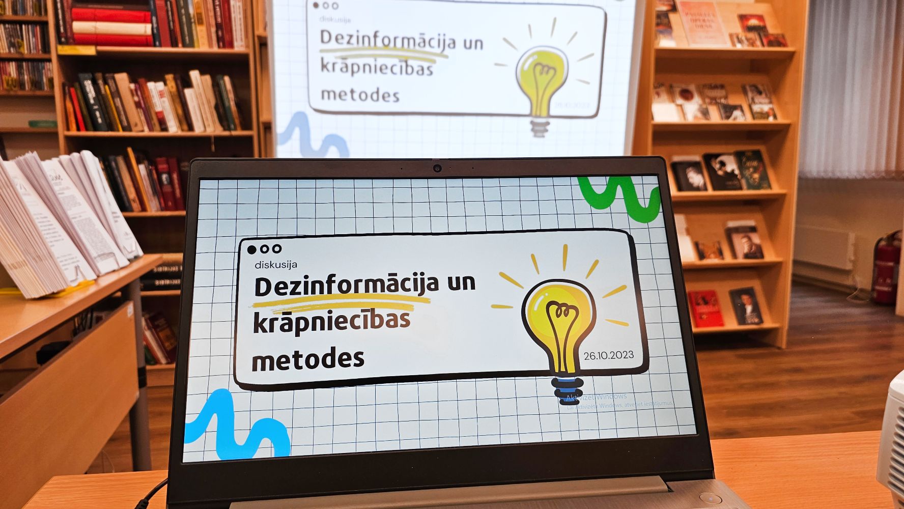 Rēzeknes Centrālā bibliotēka savai kopienai piedāvājusi lekciju “Medijpratība. Nostiprināt un izkopt“, Ventspils bibliotēkas Reģionālajā mācību centrā notikusi medijpratību nodarbība senioriem “Ticēt vai neticēt? Informācijas avotu ticamība lietotāju vērtējumā“, Jelgavas Pilsētas bibliotēkā notika bibliotekārā mācību stunda par ģeneratīvā mākslīgā intelekta rīku “ChatGPT” un “Playground AI” izmantošanas iespējām, tostarp viltus ziņu un attēlu ģenerēšanu.