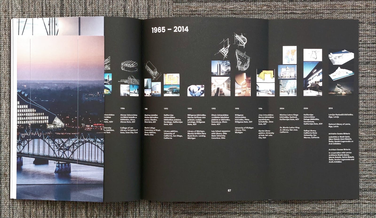 Lielas, krāsainas fotogrāfijas mijas ar skicēm, tā it kā tepat uz lapas zīmētām. Vietām lappuses ir ar atlokiem, padarot grāmatu ietilpīgu un telpisku. Grāmatas nozīmi, nopietnību un svaru pacilā poētiska gaismas klātbūtne, kaut vai nejauši uzšķirot atvērumu, kurā ir tikai viena liela fotogrāfija – Birkerta plauksta ar Nameja gredzenu pirkstā, pieskaroties Gaismas pils stikla fasādei bibliotēkas atklāšanas gadā. Pagrozot grāmatas vāku, gaismā uzmirdz sudraboti burti. Grāmatu piedzīvot ir tikpat pārsteidzoši kā izstādi, kur grūti sākumā saprast, kā iespējams telpu tā pārvērst un apmeklētāja ceļu tik gudri režisēt, par ko jāpateicas arhitektam Andrim Kronbergam, kurš atbildīgi un izņēmuma kārtā (viņš ikdienā nestrādā ar izstādēm, bet projektē vērienīgas būves) piekrita izstādi veidot. Izstādes grafikas dizaina autore – Tatjana Raičiņeca.