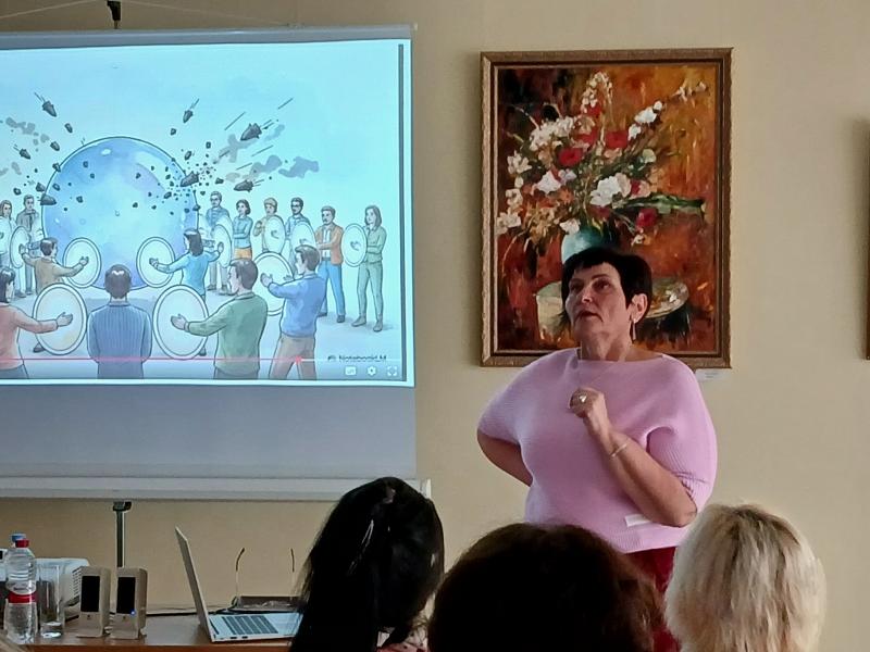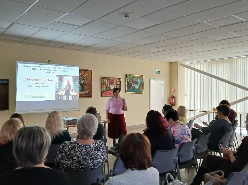 Semināru vadīja Saldus novada pašvaldības Izglītības darba speciāliste tehnoloģiju un mūžizglītības jautājumos Irēna Birgersone, kura rosināja bibliotekārus attīstīt spēju orientēties informācijas pārbagātībā, izvērtēt avotus un stiprināt sabiedrības noturību pret dezinformāciju un manipulācijām.
