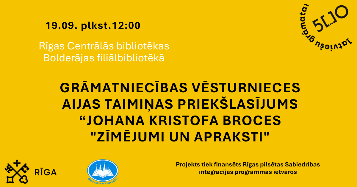 Pasākums tiek finansēts Rīgas pilsētas Sabiedrības integrācijas programmas ietvaros. un notiek norišu cikla “Latviešu grāmatai 500” ietvaros.