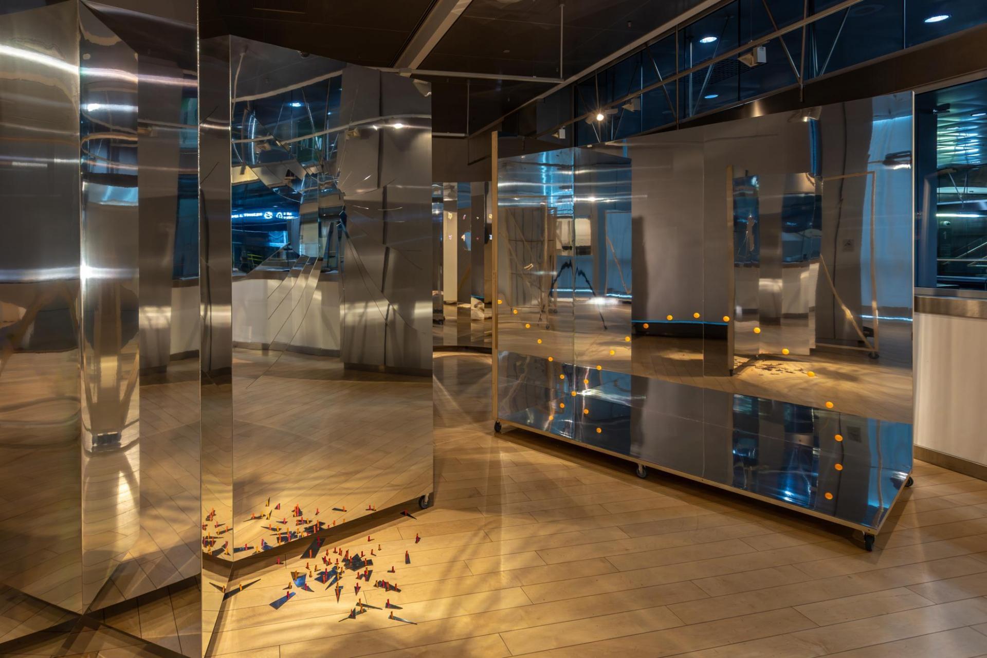 Izstādē “Bezdarbības māktie ziloņi” redzam tavu priekšstatu par bibliotēku. Tā līdzinās spoguļu labirintam, kurā lasītāju vai skatītāju sagaida vairāki atradumi – banānu kastes, ķieģeļa izsists caurums stiklā un citi. Tiekoties un sarunājoties ar bibliotekāriem izstādes tapšanas procesā, tu pētīji tieši informācijas sistēmas. Šķietami tehnisks uzstādījums tevi aizvedis līdz eksperimentālam rezultātam.