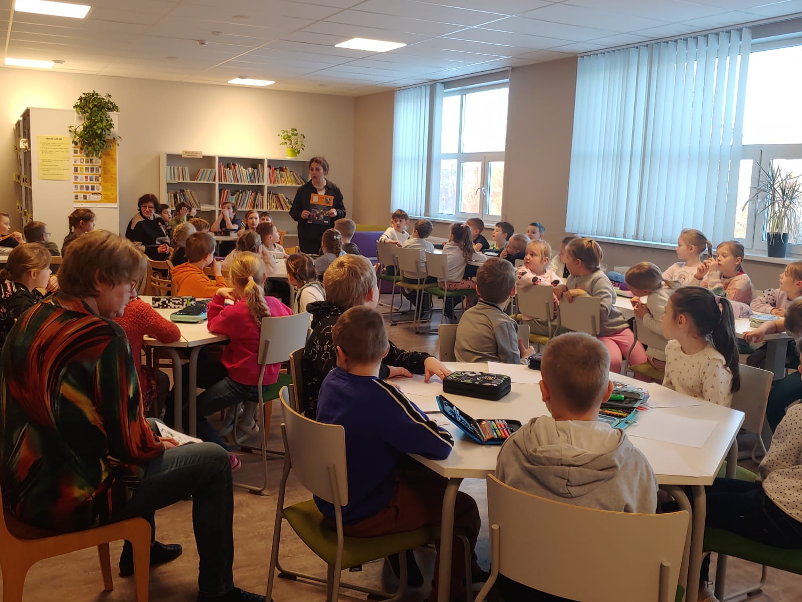 Raibi un daudzkrāsaini kā Lieldienu olas bija skolēnu sagatavotie darbi. Mūsu dienas tik krāsainas dara pelēkā krāsa, jo pelēkā ikdienā mēs meklējam krāsainu pasauli, tas atspoguļojās Imanta Ziedoņa “Pelēkās pasakas” stāstījumā un skolēnu ilustrācijās. Skatītājus iepriecināja Vinnija Pūka un viņa draugu iestudējums, bet to neparasto meiteni Pepiju Garzeķi nevar aizmirst neviens! Sākumskolas skolēni izspēlēja Meža stāstu fragmentus no Nikolaja Sladkova grāmatas “Meža mājoklīši”, bet zēniem, kuri spēlē futbolu – piespēle, bumba un vārds, piespēle, bumba un teikums – tā futbols piesaista arī grāmatu pasaulei. Skatītājus ieintriģēja Mazā raganiņa, viņa ir apņēmības pilna kļūt par labo raganu un palīdz visiem, kam nepieciešama palīdzība. Bet vai labas raganas tā dara? To noskaidrosi, ja izlasīsi grāmatu. Sirsnīgais un mīļais Mollis aizkustināja bērnu sirsniņas. Latviešu tautas pasaku burvību attēlos un tekstos atpazina jaunāko klašu skolēni, tas liecināja par bērnu iztēli un radošumu. Ieskatījāmies Gustava Salmiņa ikdienas gaitās un piedzīvojumos skolā, vēl skolas dzīves lappuses atklāja skolotājs Jāps. Mūsdienīgā versijā pēc Rūdolfa Blaumaņa darba motīviem “Tālavas taurētājs” tika veidots kā kibertaurētājs, bet Sent-Ekziperī “Mazā prinča” stāsta fragmenti mācīja mums par mieru, iecietību, draudzību un ekoloģiju, iedvesmojot mūs, jo “… īsti mēs redzam tikai ar sirdi. Būtiskais nav acīm saredzams”. Skolēni lasīja fragmentus vēl no citām grāmatām: Tūves Jānsones ”Komēta nāk”, Dzintara Tilaka “Zlatas ceļš”, Dainas Ozoliņas ”Izglābt vasaras brīvlaiku”, Gundegas Repšes “Alvas kliedziens” u.c. Izspēlējām latviskās gadskārtu tradīcijas. Droši un izteiksmīgi tika runātas dažādu dzejnieku dzejas vārsmas. Skolēni literatūras līkločus izspēlēja “Kahoot!” spēlē, bet, aizpildot ciparu lodziņus ar burtiem, skolēni uzzināja, kādas vērtības ir atrodamas rakstnieku darbos.