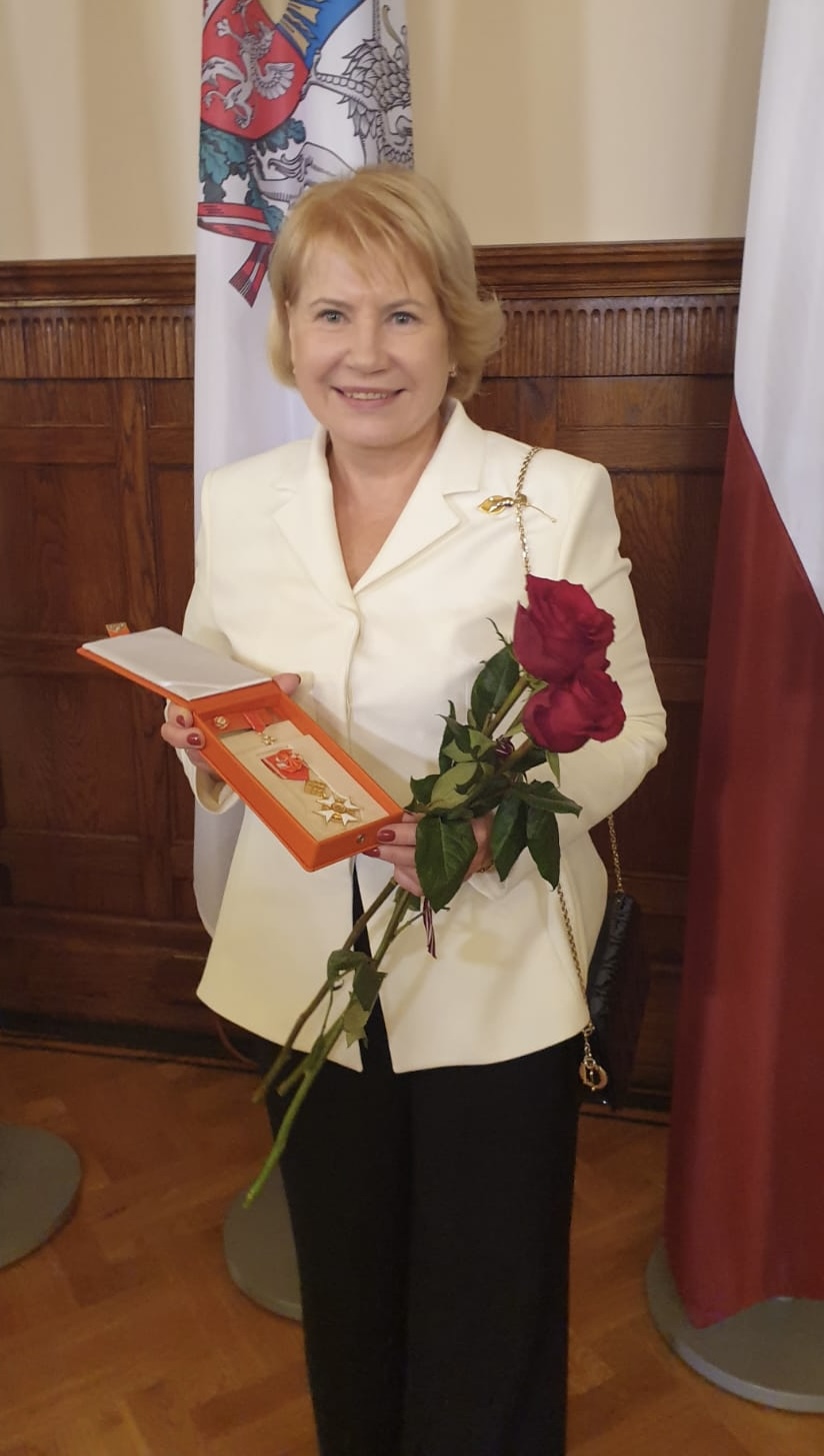 Ināra Dundure, saņemot Atzinības krustu. Foto no personiskā arhīva