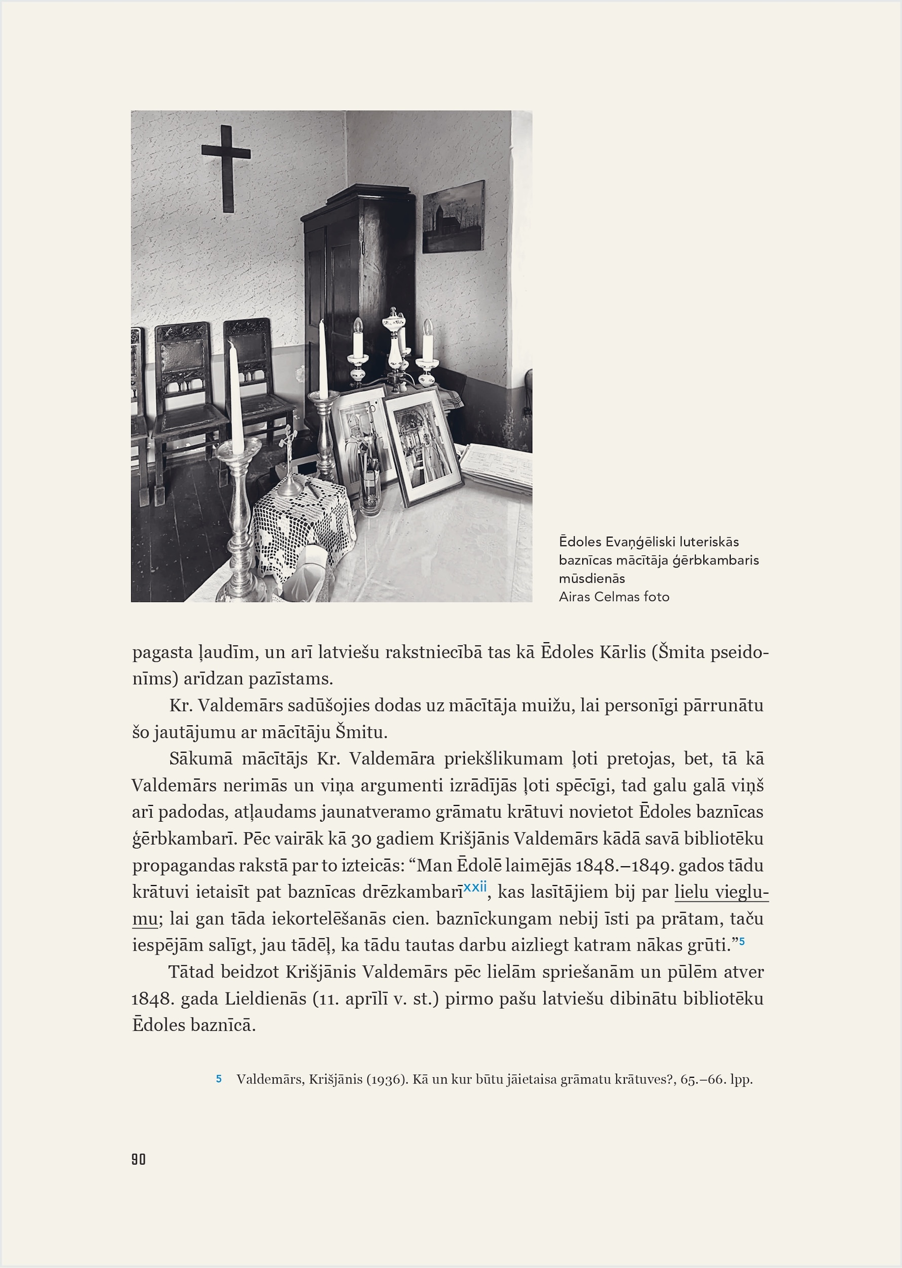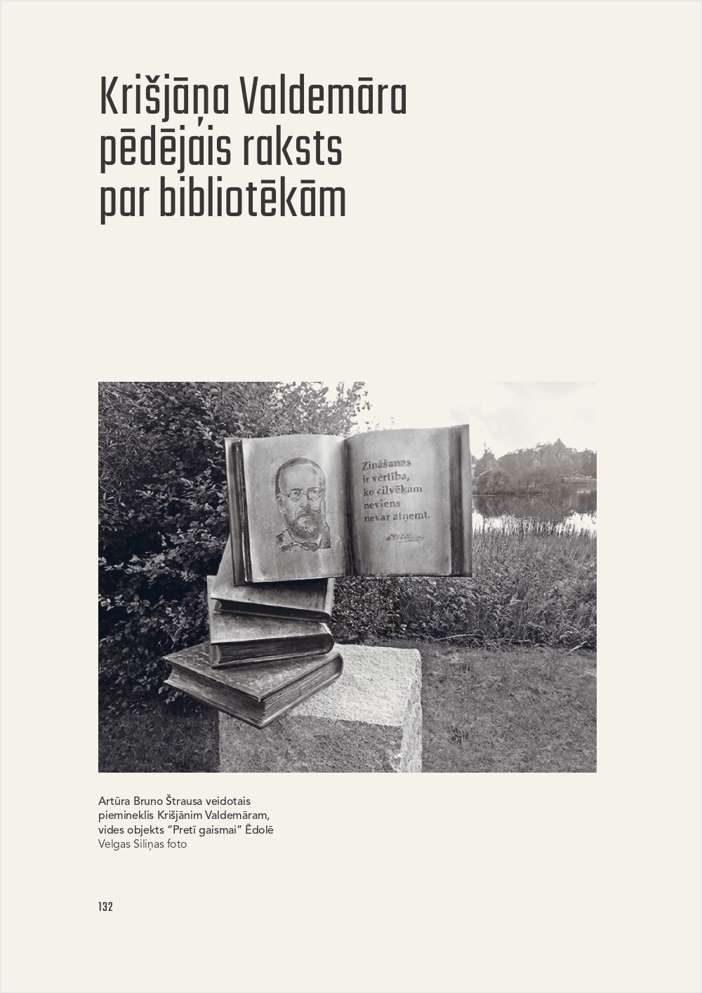 Jubileja bija tikai papildu stimuls, jo ideja par sabiedriskā darbinieka, bibliotēku nozares entuziasta Teodora Līventāla apcerējuma “Krišjānis Valdemārs latvju bibliotēku celtniecībā” publicēšanu bija briedusi jau sen. Bija lasīta Teodora Līventāla publikācija par latviešu bibliotēku vēsturi pirmajā “Bibliotēku padomes gada grāmatā”, iepazīts viņa apjomīgais manuskripts “Latviešu tautas bibliotēku vēstures attīstības gaita” Latvijas Universitātes bibliotēkas Misiņa bibliotēkā. To savulaik, atkārtotās padomju okupācijas sākumā, Misiņa bibliotēkas direktors Kārlis Egle plānoja izdot bibliotēkzinātnes studentu vajadzībām, bet iznīcinoša vērtējuma dēļ tas palika rokrakstā. Darbs “Krišjānis Valdemārs latvju bibliotēku celtniecībā”, ko pērn publicējām, ir šī manuskripta daļa. Līventāls to piedāvāja Latvijas PSR Valsts bibliotēkai (mūsdienās – Latvijas Nacionālā bibliotēka) izdot Krišjāņa Valdemāra dibinātās Ēdoles bibliotēkas simtajā gadskārtā 1948. gadā. Sākumā ierosinājums tika uztverts ļoti atzinīgi, taču galu galā arī šis darbs līdz lasītājiem nenonāca.