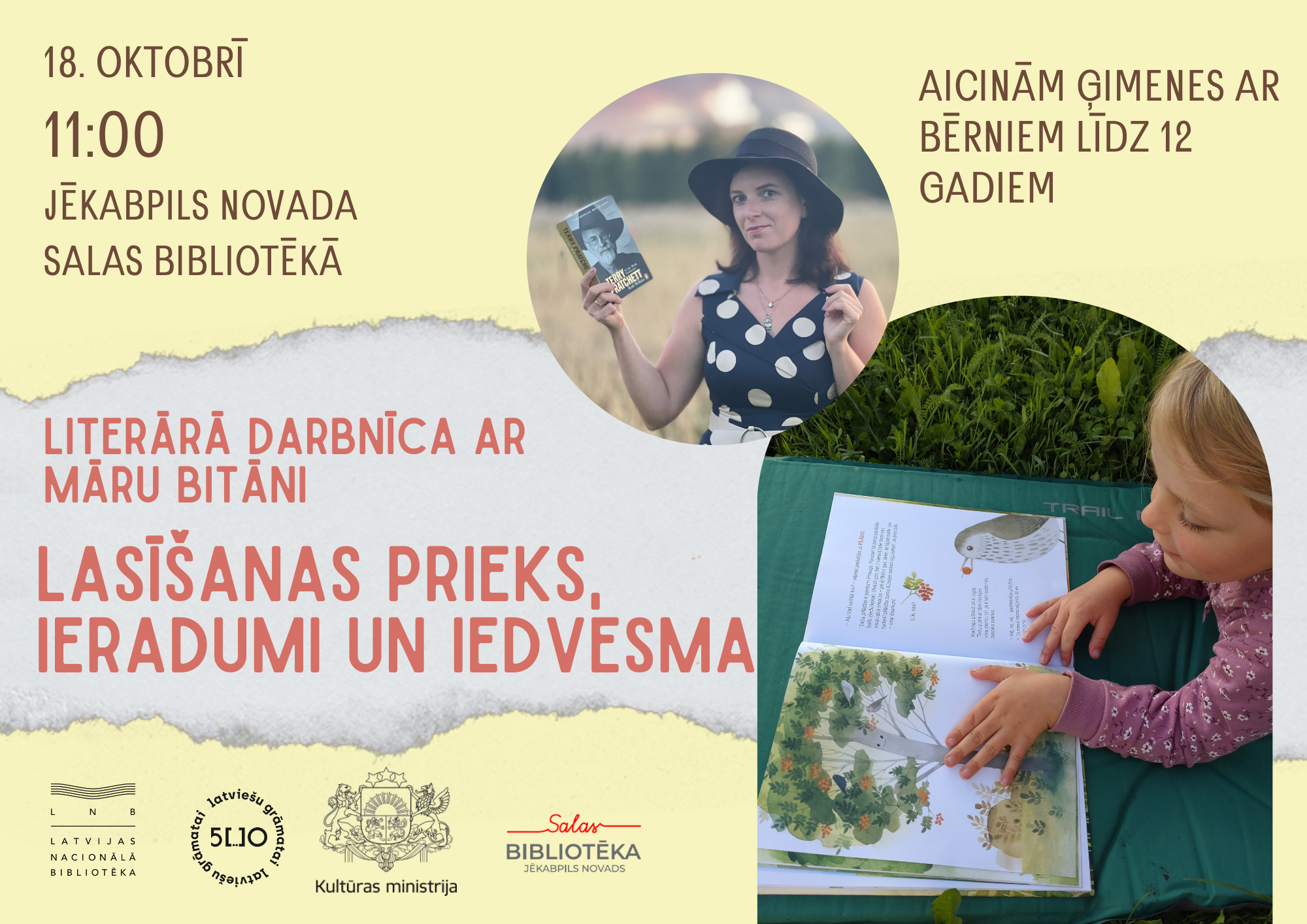 Kā padarīt lasīšanu par ikdienas ieradumu jau no mazotnes? Kā vecākiem atrast laiku grāmatai steigas pilnajā ikdienā? 2025. gada 18. oktobrī plkst. 11.00 aicinām ģimenes ar bērniem līdz 12 gadu vecumam uz lasīšanas veicināšanas pasākumu “Lasīšanas prieks, ieradumi un iedvesma” Jēkabpils novada Salas bibliotēkā. Pasākums norisinās ciklā “Latviešu grāmatai 500” sadarbībā ar Latvijas Nacionālo bibliotēku un ar LR Kultūras ministrijas finansiālu atbalstu.