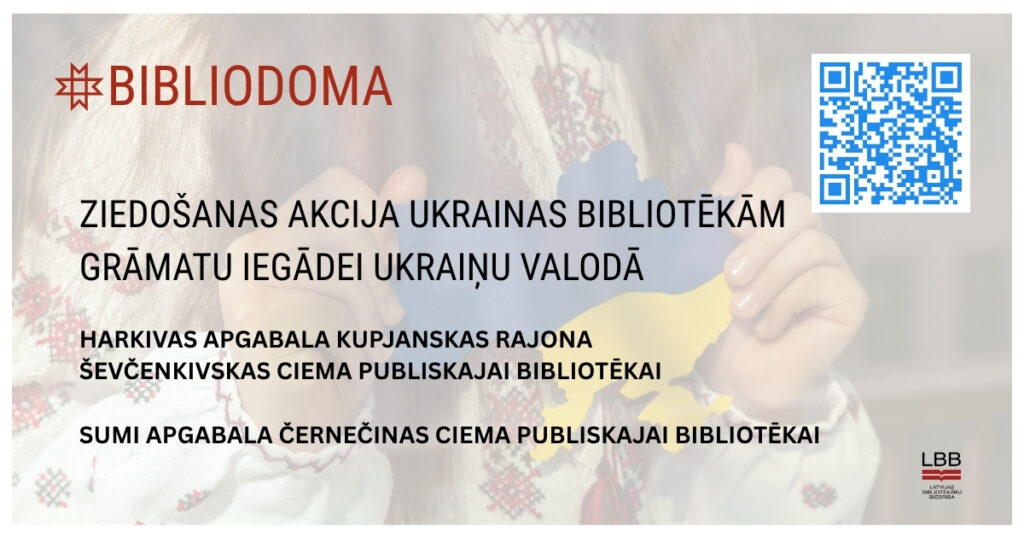 Izsludinot semināru, atklājam arī Latvijas Bibliotekāru biedrības iniciētu ziedošanas akciju divām mazām, bet drosmīgām bibliotēkām Ukrainas pierobežas ciemos, kuri šobrīd atrodas uz frontes līnijas – Harkivas apgabala Kupjanskas rajona Ševčenkivskas ciema publiskajai bibliotēkai un Sumi apgabala Černečinas ciema publiskajai bibliotēkai. Informācija par akciju un iespēju ziedot šeit.