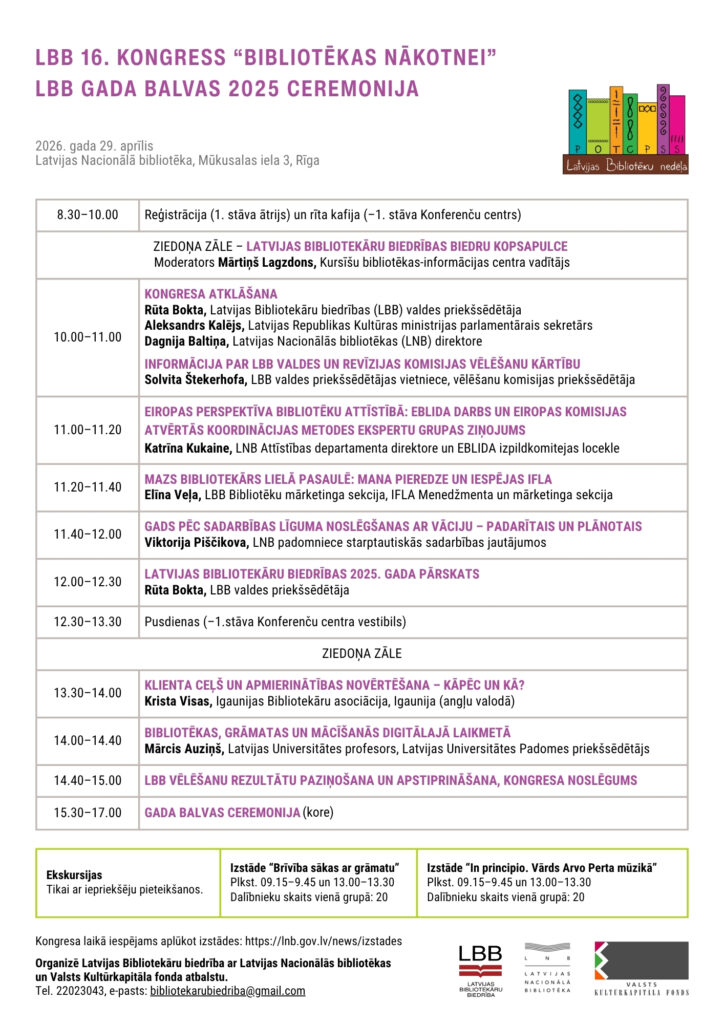Latvijas Bibliotekāru biedrības 16. kongress “Bibliotēkas nākotnei”