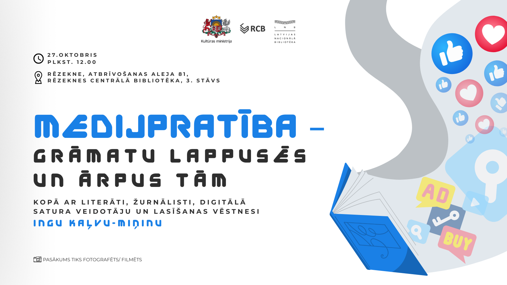 2025. gada 27. oktobrī plkst. 12.00 Rēzeknes Centrālā bibliotēka aicina uz pasākumu “Medijpratība – grāmatu lappusēs un ārpus tām”, kurā piedalīsies žurnāliste, literāte, grāmatu blogere un lasīšanas vēstnese Inga Kaļva-Miņina.