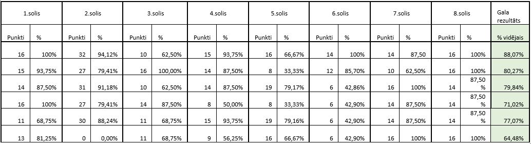 Dalību mentoringa programmā sāka 16 (pieteica 17) metodiķi, bet beidza 6 dalībnieki.