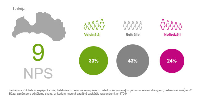 NPS koeficients virs 0 – labi, virs 20 – vērojama labvēlīga noskaņa, virs 50 – lieliski, virs 80 – sasniegts pasaules līmenis.