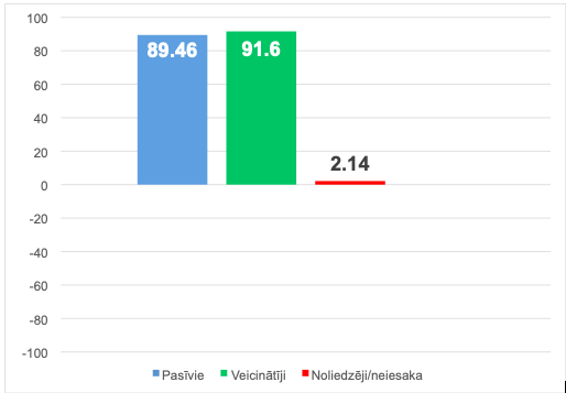 Ja 10 % respondentu ir noliedzēji, 20 % ir pasīvie un 70 % ir veicinātāji, NPS rezultāts būtu 70%–10% = 60