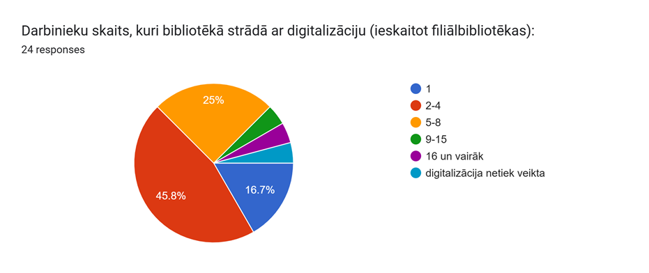 Attiecībā uz digitalizācijas stratēģijas izstrādi, nosakot digitalizācijas prioritātes un identificējot unikālo saturu un materiālus, 2024. gadā vairāk nekā puse bibliotēku (54%) ir vai nu pilnībā izstrādājušas stratēģiju, vai arī noteikušas mērķus un identificējušas unikālo saturu. Vairākas bibliotēkas norādīja, ka, lai gan atsevišķs dokuments nav izveidots, digitalizācijas darbs tiek organizēts, balstoties uz vietējā kultūras vidē noteiktajām dokumentu pārvaldības prioritātēm vai, ka ir noteiktas prioritātes un identificēti materiāli ar skaidru darba plānu, bet oficiāla stratēģija vēl tiek vai tiks izstrādāta bibliotēkas kopējās stratēģijas ietvaros. Salaspils novada bibliotēka gada pārskatā minēja, ka ir precizējusi kritērijus un pārskatījusi savas digitālās kolekcijas un virtuālās izstādes, kas liecina par aktīvu digitalizācijas prioritāšu definēšanu, apzinot un sakārtojot jau esošo situāciju. Līdzīgi Bauskas Centrālā bibliotēka ir izvērtējusi un caurskatījusi savas esošās digitālās kolekcijas, izvērtējot arī datņu kvalitāti. Tomēr ievērojams īpatsvars (46%) norādīja, ka digitalizācijas stratēģija tām nav izstrādāta.