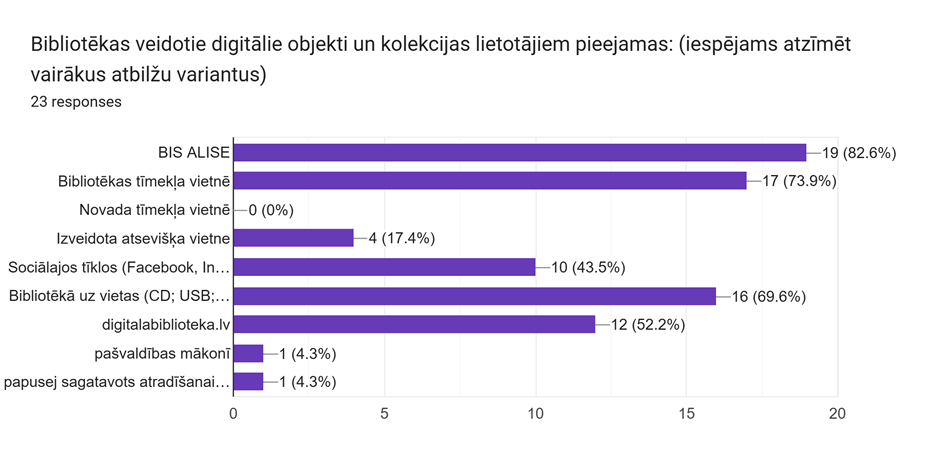 Digitālās kolekcijas izveide Digitālajā bibliotēkā ļauj plašākam lokam lietotāju ieraudzīt vienkopus konkrētam reģionam zīmīgo saturu. Bibliotēkas digitālā satura atrādīšanai izmanto dažādus risinājumus, ņemot vērā vēsturisko kontekstu un iespējas. Bibliotēkas turpina digitalizētos novadpētniecības materiālus atrādīt BIS ALISE, bibliotēkas tīmekļa vietnē, bibliotēkā uz vietas un sociālajos medijos (4. att.).