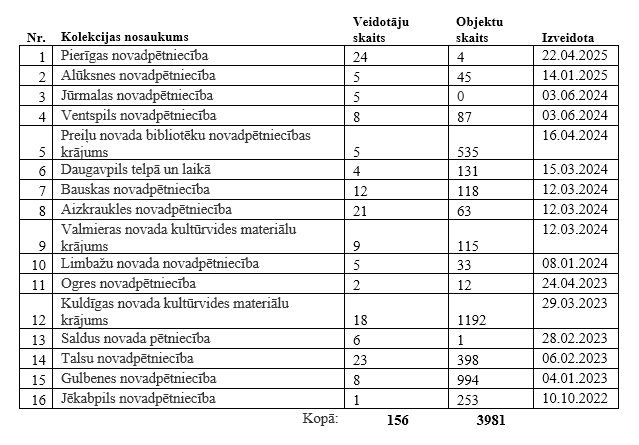 1. tab. Reģionu galveno bibliotēku veidotās kolekcijas DKM platformā, 10.06.2025. dati