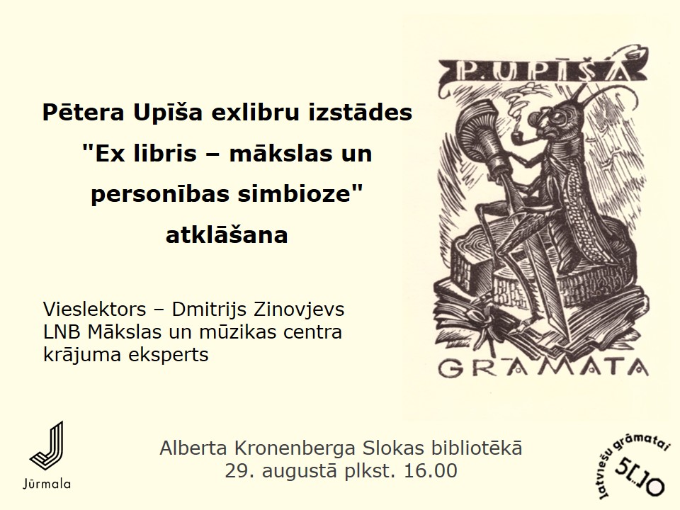 2024. gada 29. augustā plkst. 16.00 Alberta Kronenberga Slokas bibliotēkā tiks atklāta Pētera Upīša ekslibru izstāde “Ex libris – mākslas un personības simbioze”, kas tiek organizēta norišu cikla “Latviešu grāmatai 500” ietvaros.