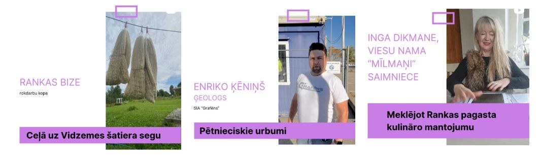 Kā paraugus un iedvesmai iespējams skatīt Asnates Rancānes un pētnieka Jāņa Šiliņa video ierakstus.