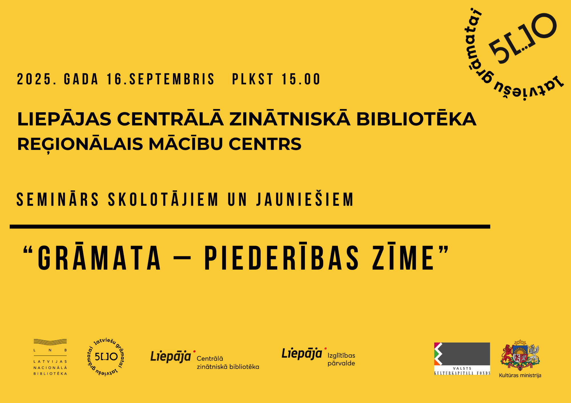 Pasākumus īstenos Liepājas Centrālā zinātniskā bibliotēka sadarbībā ar Liepājas Izglītības pārvaldi. Projekts tiek organizēts Latvijas Nacionālās bibliotēkas notikumu cikla “Latviešu grāmatai 500” ietvaros, to atbalsta Latvijas Nacionālā bibliotēka un Kultūras ministrija.