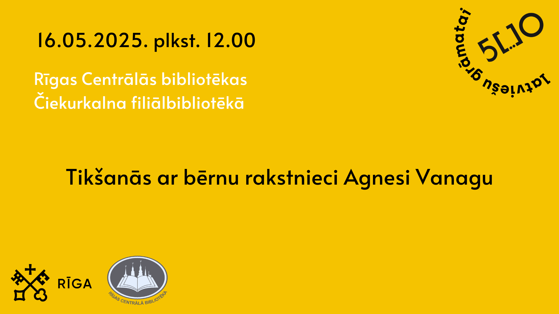 16. maijā plkst. 12.00 Rīgas Centrālās bibliotēkas Čiekurkalna filiālbibliotēka (Čiekurkalna 1. līnija 64) aicina uz tikšanos bibliotēkas dārzā ar bērnu grāmatu autori Agnesi Vanagu.