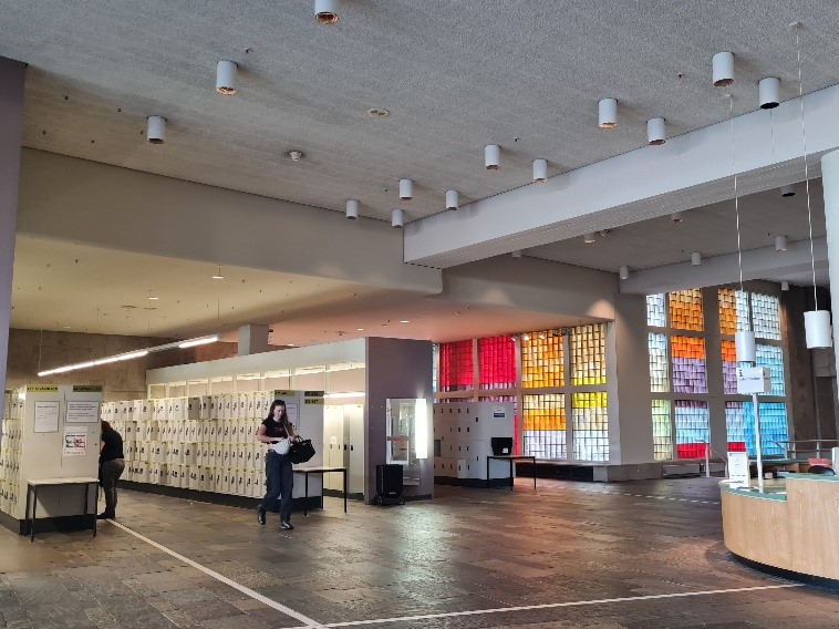 Interesanti bija dzirdēt par ēku vēsturisko attīstību, kultūrvēsturisko vērtību un attiecībām ar pilsētvidi un kopienu. WTI bibliotēka ir uz izglītojamiem vērsta, ļaujot tiem bibliotēku izmantot diezgan patstāvīgi. No 2018. gada ir 24h pieeja (nopīkstinot lasītāja karti). Runājot par faktu, ka bibliotekārs nav klātesošs – šī ir kopēja tendence, ko redzam mobilitātes laikā. Visās trīs bibliotēkās uz vietas (tieši lasītavās) darbinieki tikpat kā nav manāmi (ja tādi ir, tad ļoti mazā skaitā), apmeklētājiem ļauts diezgan brīvi rosīties.