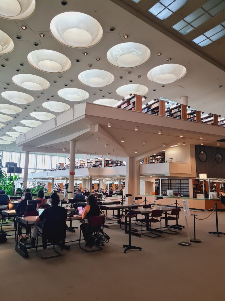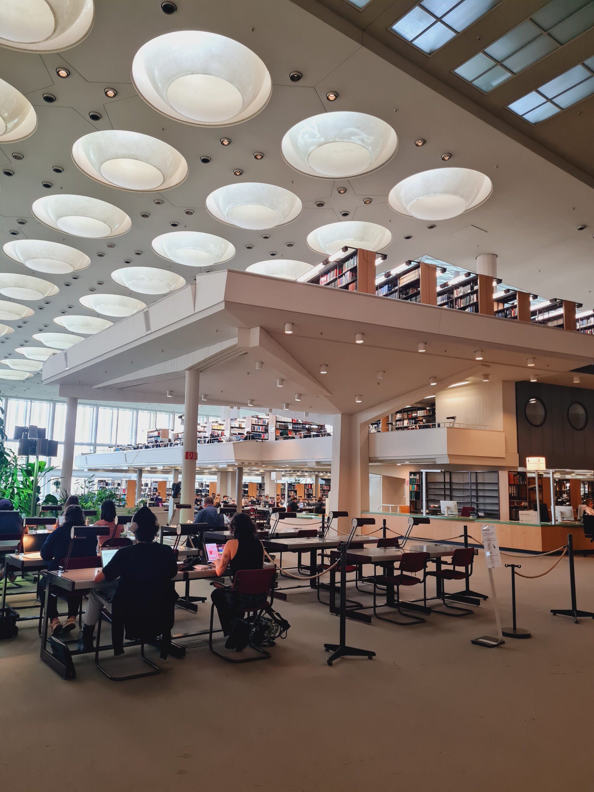 Interesanti bija dzirdēt par ēku vēsturisko attīstību, kultūrvēsturisko vērtību un attiecībām ar pilsētvidi un kopienu. WTI bibliotēka ir uz izglītojamiem vērsta, ļaujot tiem bibliotēku izmantot diezgan patstāvīgi. No 2018. gada ir 24h pieeja (nopīkstinot lasītāja karti). Runājot par faktu, ka bibliotekārs nav klātesošs – šī ir kopēja tendence, ko redzam mobilitātes laikā. Visās trīs bibliotēkās uz vietas (tieši lasītavās) darbinieki tikpat kā nav manāmi (ja tādi ir, tad ļoti mazā skaitā), apmeklētājiem ļauts diezgan brīvi rosīties.
